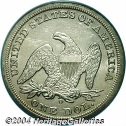 <table><tr><td><table><tr><td>1850-O S$1 AU58 NGC. While from a far larger mintage (40,000 pieces) than its Philadelphia counterpart, the '50-O has a stingier survival ratio in high grades. This piece has a brilliant appearance with ample luster remaining. Only light wear is noted over the highpoints. Several small to medium sized abrasions are noted overall, the most visible being a mark between stars 5 and 6.Scarce and desirable in this high grade. <BR><BR><B>Important notice:</B> Heritage usually auctions material at the rate of 200-250 lots per hour. On some occasions eBay Live bid software or the Internet may not be able to keep up with the pace of the auction. We recommend placing a realistic absentee bid now as insurance to avoid disappointment. Occasionally the auctioneer may eliminate or reject an eBay Live bid, and the auctioneer may also reopen a lot after the close of the eBay live bidding (usually because we missed an audience bid), and may reject your bid even if it shows you as the winning bidder. By bidding via eBay Live, you agree that Heritage may award the lot to another bidder at its sole discretion under the circumstances described above or any other reasonable circumstances. Since eBay bids are not shown to us until we open the lot on the floor, we treat those bids just like floor bids. In most cases the floor responds before the eBay bid is presented to us, due to Internet lag time, so for consistency we have made it a policy that floor bids are always considered first over tie eBay live bids. Also please note that all Heritage lots purchased through eBay Live carry a 20% Buyer's Premium. Please make sure you read the Terms and Conditions before you bid. <BR><BR><B>IMPORTANT ANNOUNCEMENT ABOUT RESERVES:</B> Heritage now divulges all reserves on its web site 7 days before every auction. If you want to know whether the reserve on this lot has been met, and if not, what the reserve amount is, please visit this lot page on the HeritageCoin.com web site, or email: bid@HeritageGalleries.com </span></font></td></tr></table></td></tr></table>