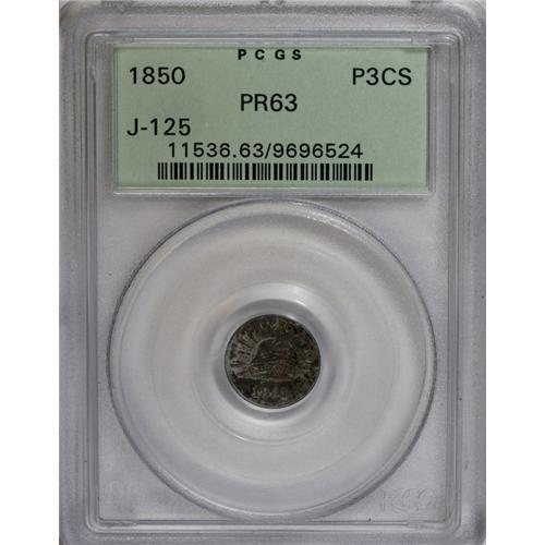 1850 P3CS Three Cent Silver, Judd-125 Original, Polloc