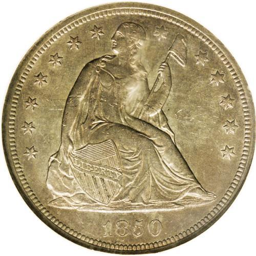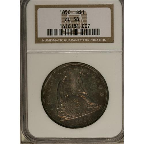 1850 S$1 AU58 NGC. The 1850 dollar, with a business st