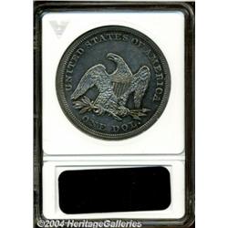 <B>1850<S$1>--Cleaned--ANACS. AU Details, Net XF45.</B></I> A scarce key date issue with a mintage of only 7,500 pieces. Semi-prooflike from the Mint, and now with added brightness from cleaning, each side displays appealing lilac-gray patina. A bit weakly defined on the obverse stars, there are a few small abrasions on each side, and a rim bump on the obverse at 7 o'clock.<BR><I>From The Paulsboro Collection, Part Two.</B></I> <BR><BR><B>Important notice:</B> Heritage usually auctions material at the rate of 200-250 lots per hour. On some occasions eBay Live bid software or the Internet may not be able to keep up with the pace of the auction. We recommend placing a realistic absentee bid now as insurance to avoid disappointment. Occasionally the auctioneer may eliminate or reject an eBay Live bid, and the auctioneer may also reopen a lot after the close of the eBay live bidding (usually because we missed an audience bid), and may reject your bid even if it shows you as the winning bidder. By bidding via eBay Live, you agree that Heritage may award the lot to another bidder at its sole discretion under the circumstances described above or any other reasonable circumstances. Since eBay bids are not shown to us until we open the lot on the floor, we treat those bids just like floor bids. In most cases the floor responds before the eBay bid is presented to us, due to Internet lag time, so for consistency we have made it a policy that floor bids are always considered first over tie eBay live bids. Also please note that all Heritage lots purchased through eBay Live carry a 20% Buyer's Premium. Please make sure you read the Terms and Conditions before you bid. </span></font></tr></table></td></tr></table>
