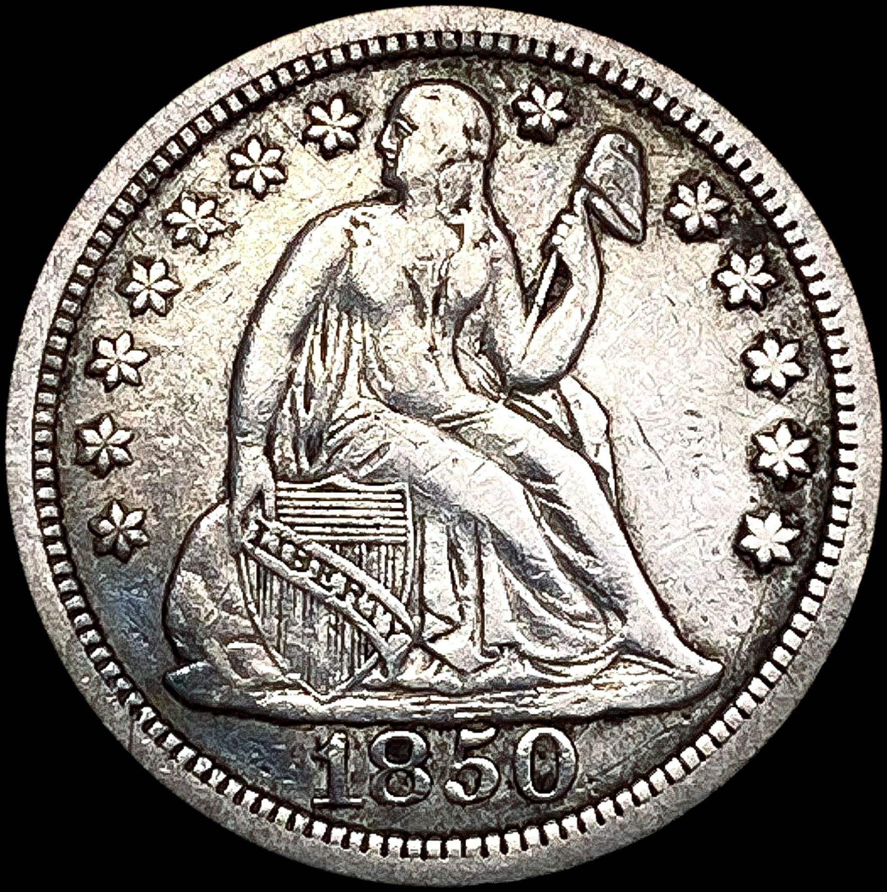 1850 Seated Liberty Dime NEARLY UNCIRCULATED