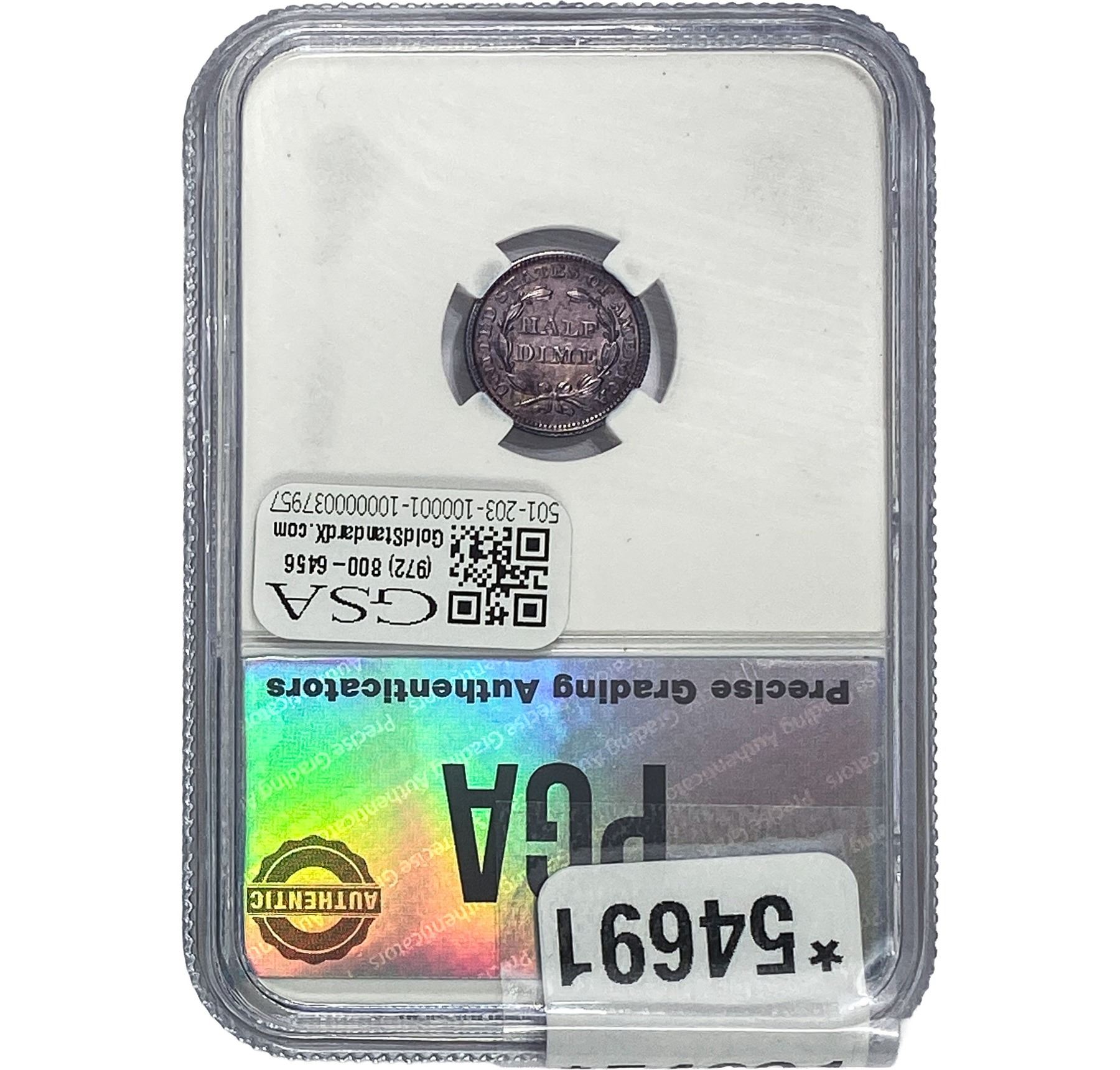 l. All non-certified coins and currency are guaranteed genuine, but are not guaranteed as to grade, since grading is a matter of opinion, an art and not a science, and therefore the description rendered by GSA or any third-party grading service may not agree with the opinion of others (including trained experts), and the same expert may not grade the same item with the same grade at two different times. GSA may, but is not obligated to, express an opinion as to non-certified numismatic items, in GSA’s opinion, or by its employees’ experience and the current interpretation of the American Numismatic Association’s standards as of the date the catalog was prepared. There is no guarantee or warranty expressed or implied that the grading opinions utilized by GSA, if any, will meet the standards of any grading service at any time in the future.