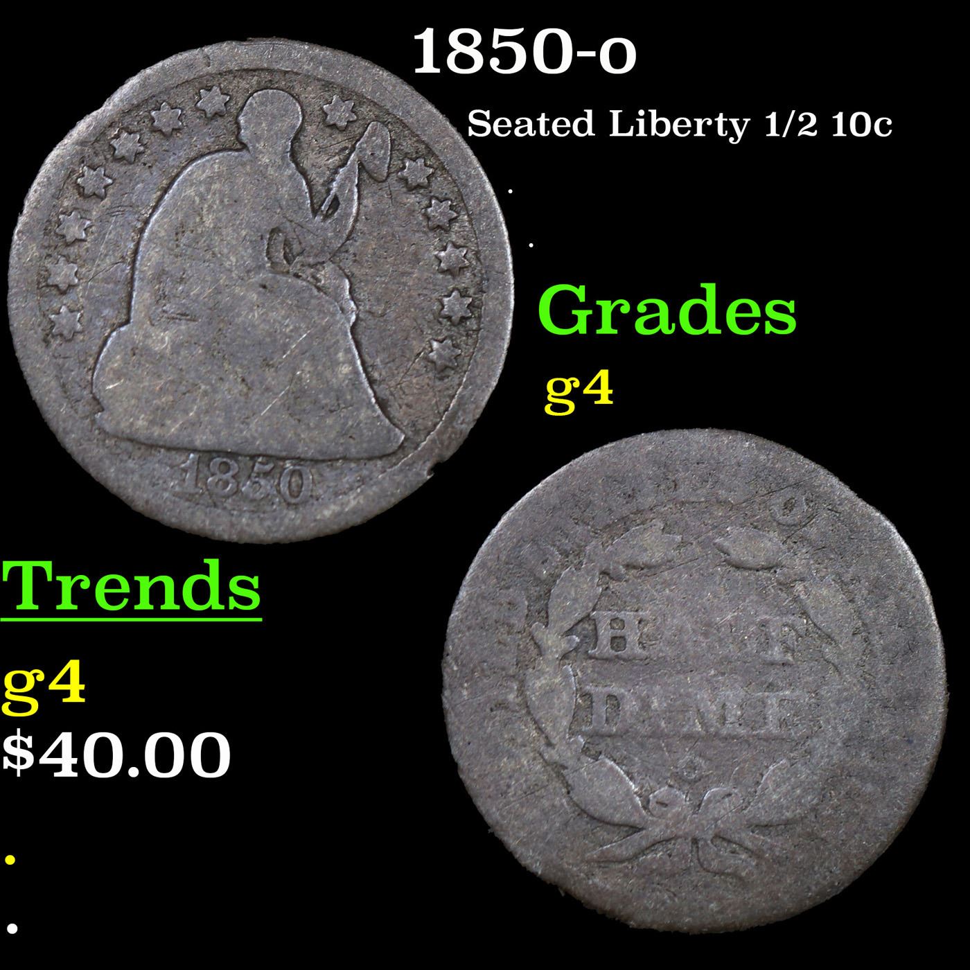 1850-o Seated Liberty Half Dime 1/2 10c Grades g, good.
