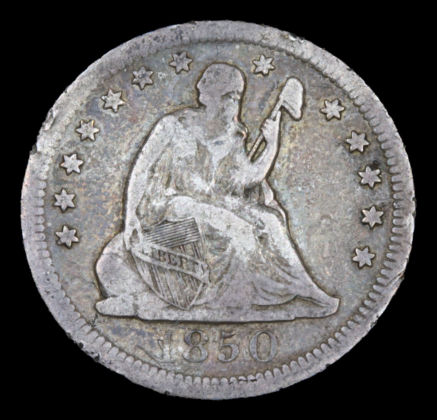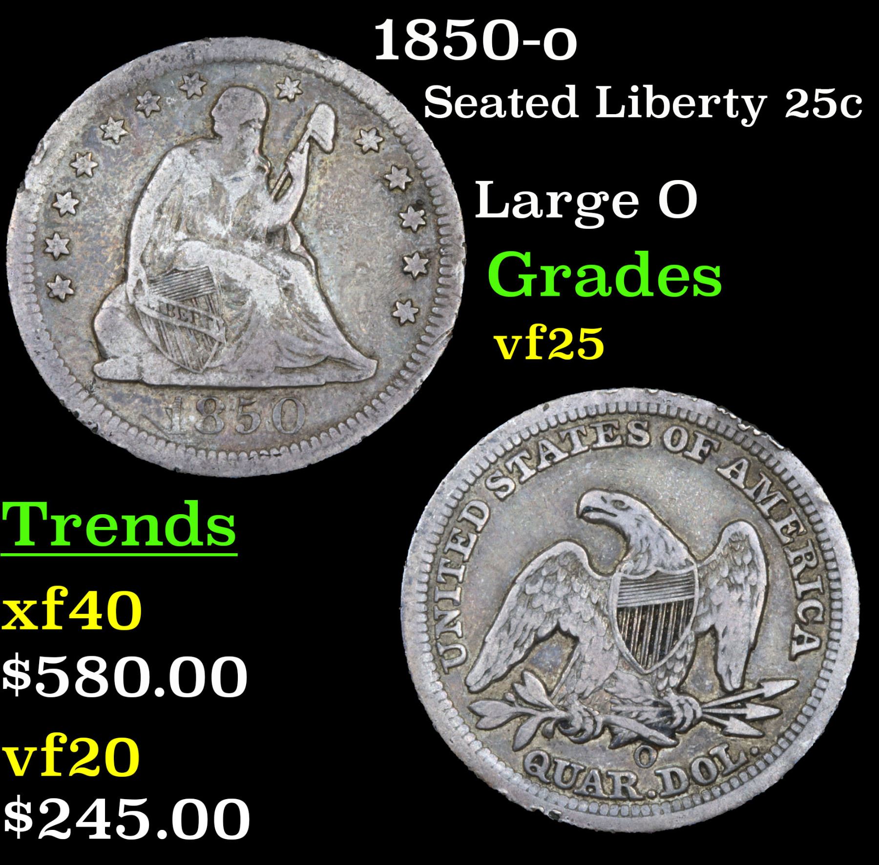 1850-o Seated Liberty Quarter 25c Grades vf+.