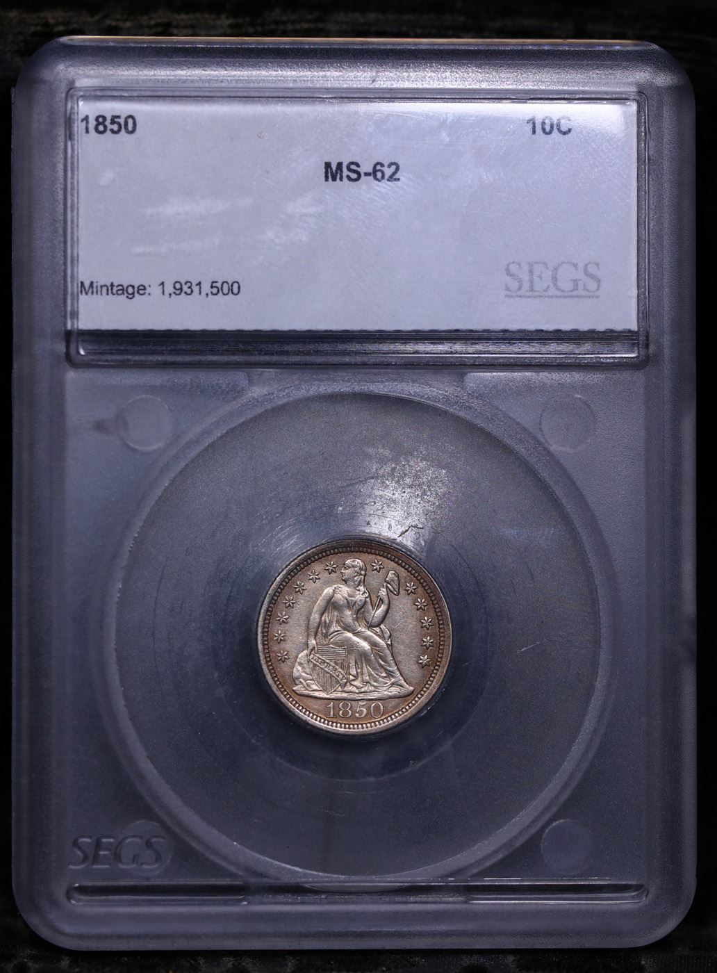 1850-p Seated Liberty Dime 10c Graded ms62 By SEGS. A Key Date's Pick, Bid to Win, Don't let it get Away, you might not find its equal Coin