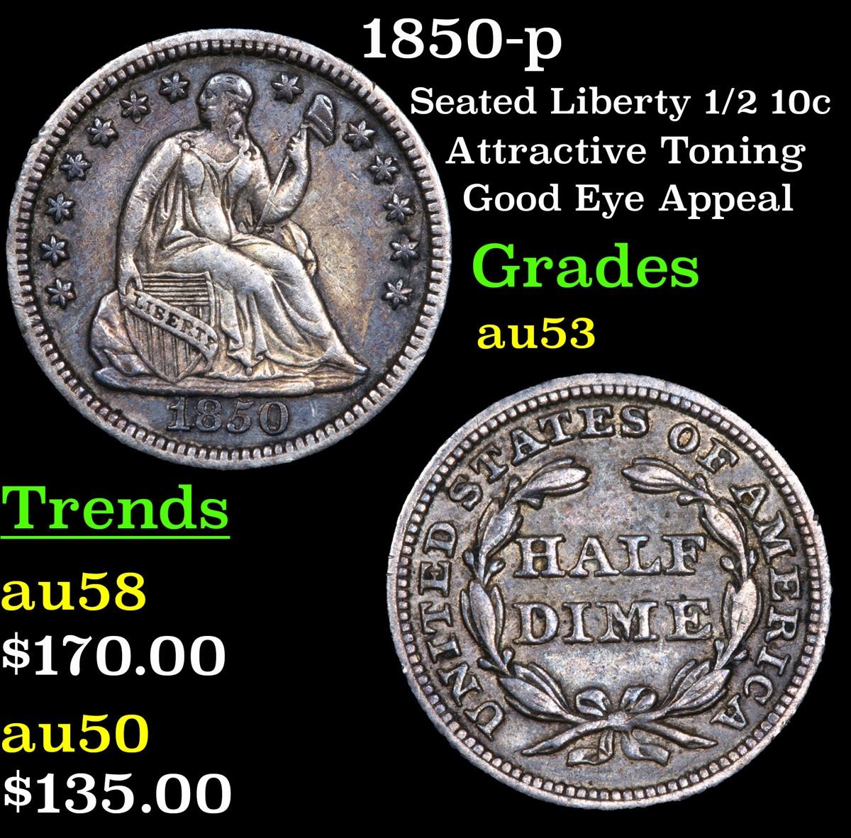 1850-p Seated Liberty Half Dime 1/2 10c Grades Select AU.