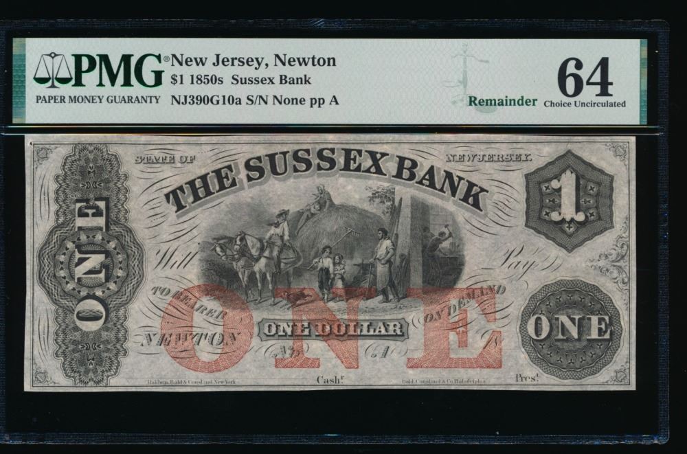 One 1850's $1 Newton NJ Obsolete Note PMG 64.