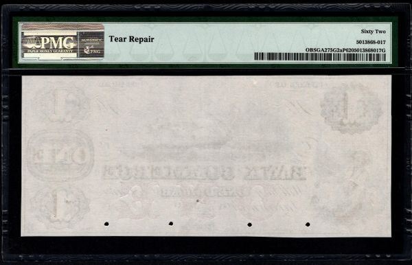 One 1850's $1 Savannah GA Obsolete Note PMG 62.