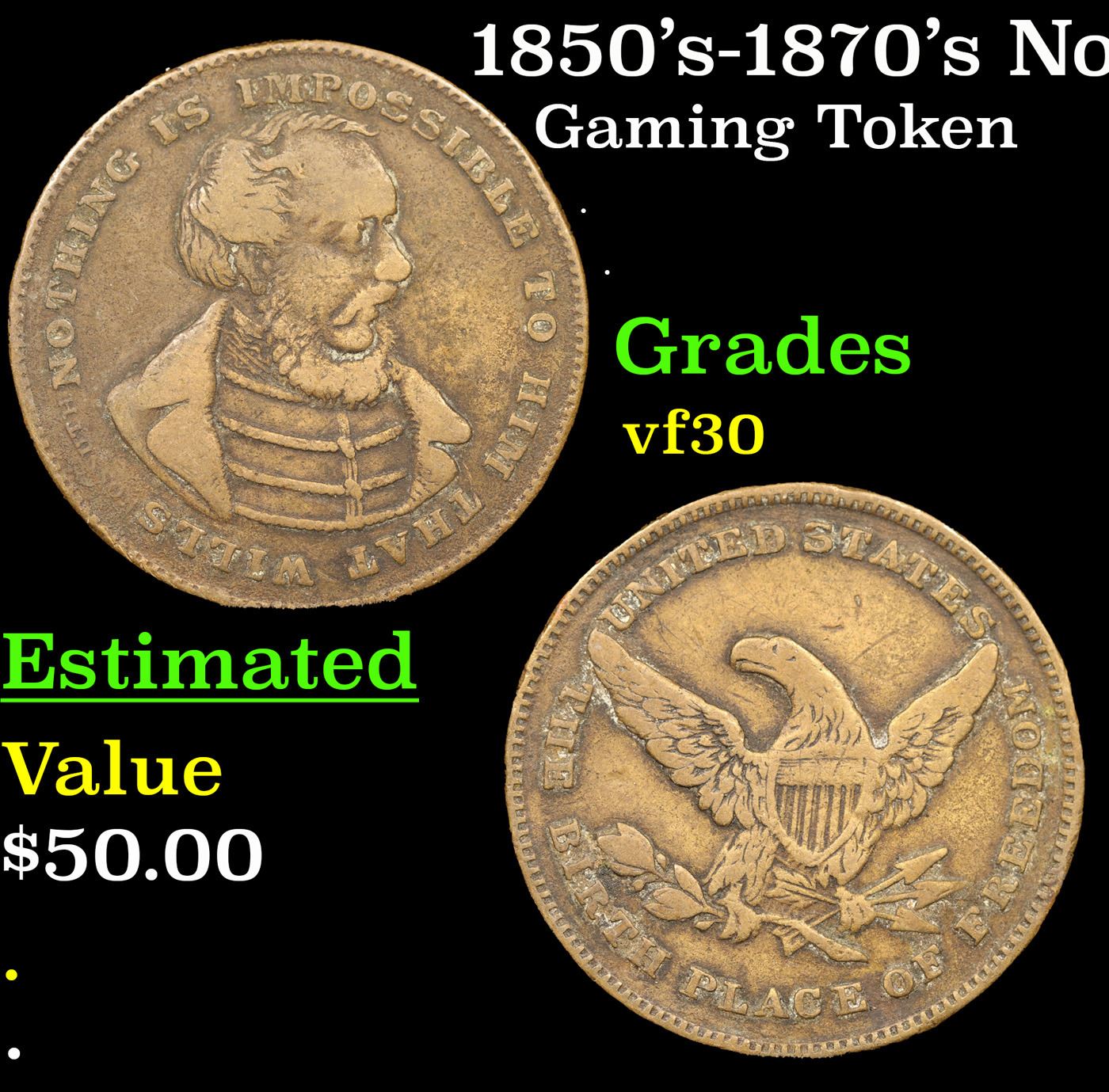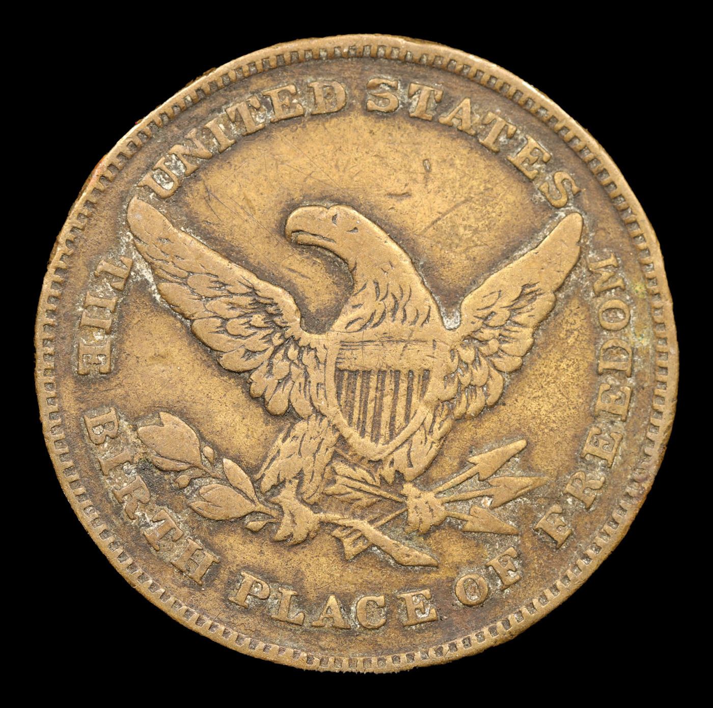 1850's-1870's Nothing Is Impossible Louis Kossuth Gaming Token Grades vf++. This gaming token was struck in brass around the time of the US Civil War. There are two varieties: NOTHING IS IMPOSSIBLE and THE WASHINGTON OF HUNGARY. The obverse ('heads' side) shows Lajos Kossuth, a Hungarian freedom fighter of the period, and the reverse side shows the pattern of a US gold $10 eagle coin.