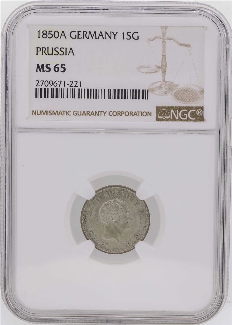 One 1850A Germany 1 Silber Groschen Prussia Coin NGC MS65. NGC Certified.