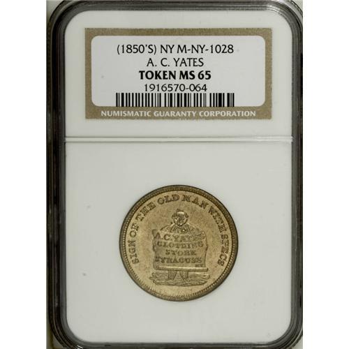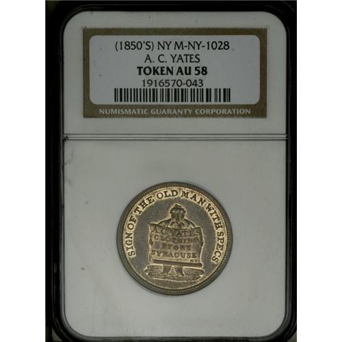 (1850s) A.C. Yates, Syracuse, NY, AU58 NGC, M-NY-1028,