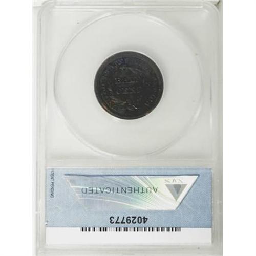 <B>1851 1/2 C --Corroded--ANACS. AU55 Details.</B></I> NGC Census: (16/347). PCGS Population (40/206). Mintage: 147,672. Numismedia Wsl. Price for NGC/PCGS coin in AU55: $138. (#1224)<BR><BR><B>Coin Engraver:</B> Christian Gobrecht<BR><BR><b>Shipping:</b> Coins & Currency (<a target="_blank" href="http://www.heritageauctions.com/common/shipping.php">view shipping information</a>)