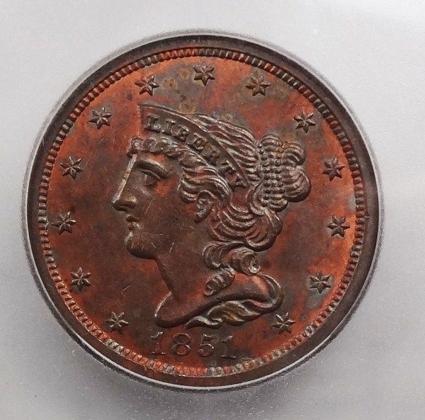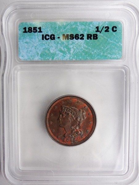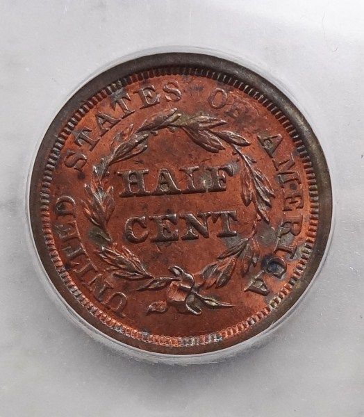A BEAUTIFUL RED BROWN HALF CENT IN A HIGHER GRADE TAKE A LOOK!!, EST. $425.00 TO $450.00