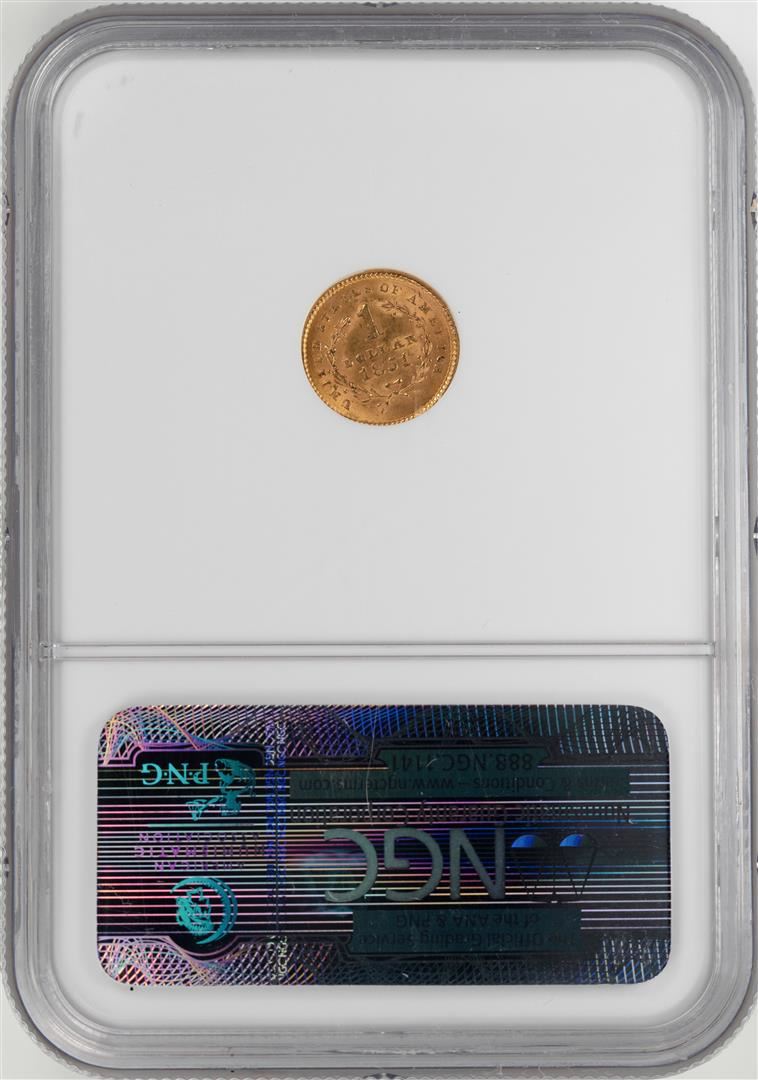 One 1851 $1 Liberty Head Gold Dollar Coin NGC MS62. NGC Certified.
