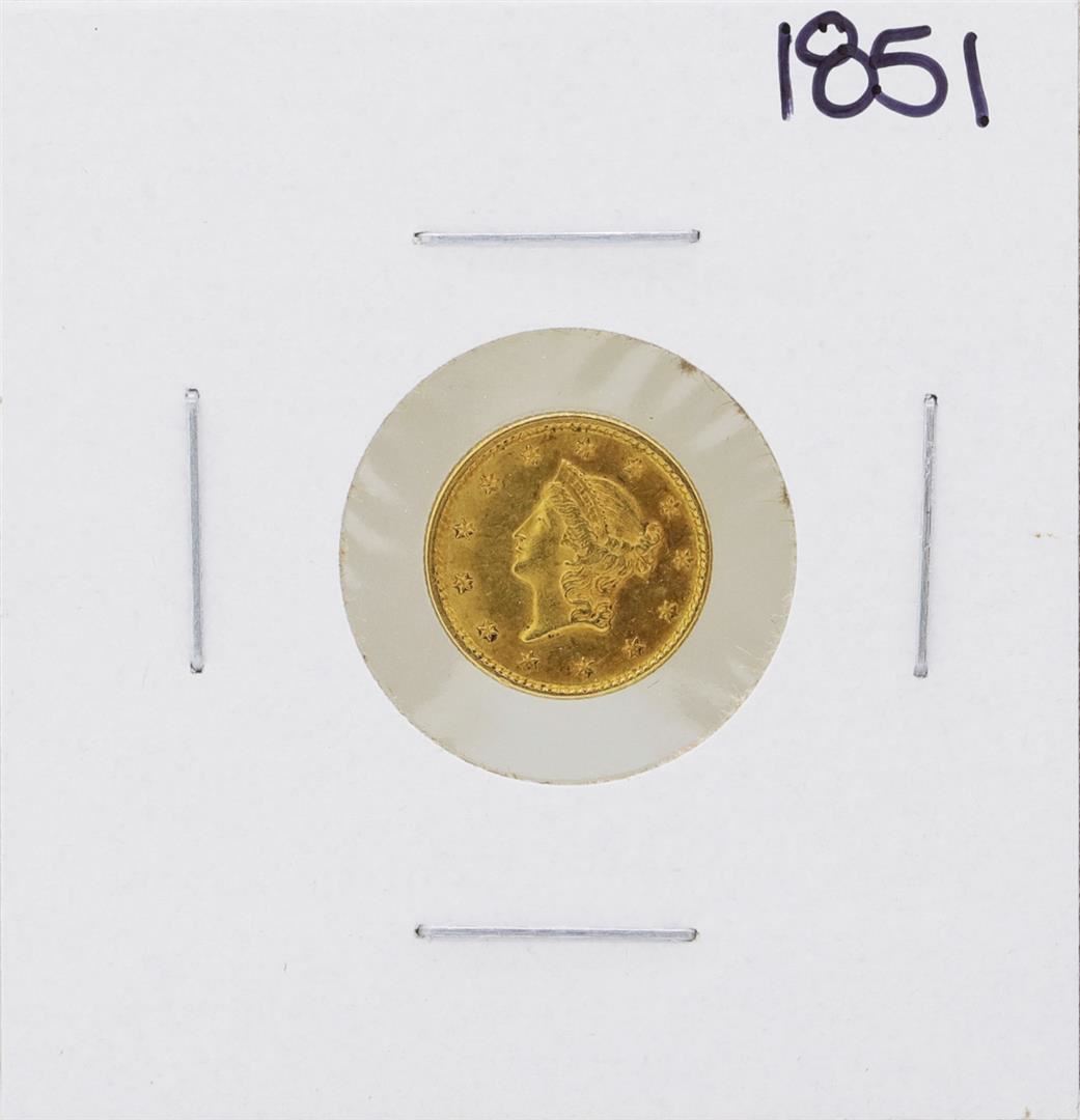 One 1851 $1 Liberty Head Gold Dollar Coin.