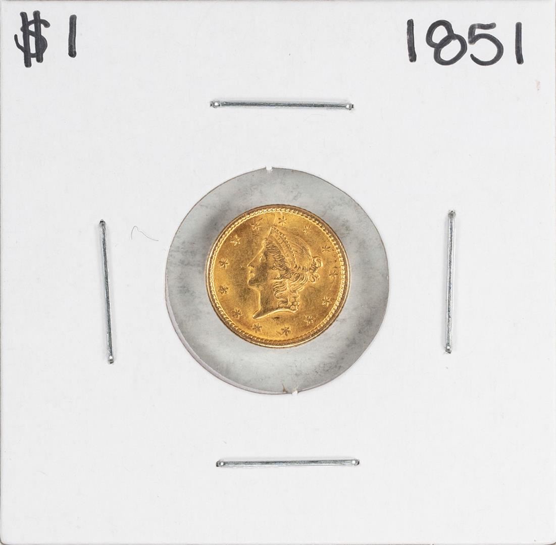 One 1851 $1 Liberty Head Gold Dollar Coin.