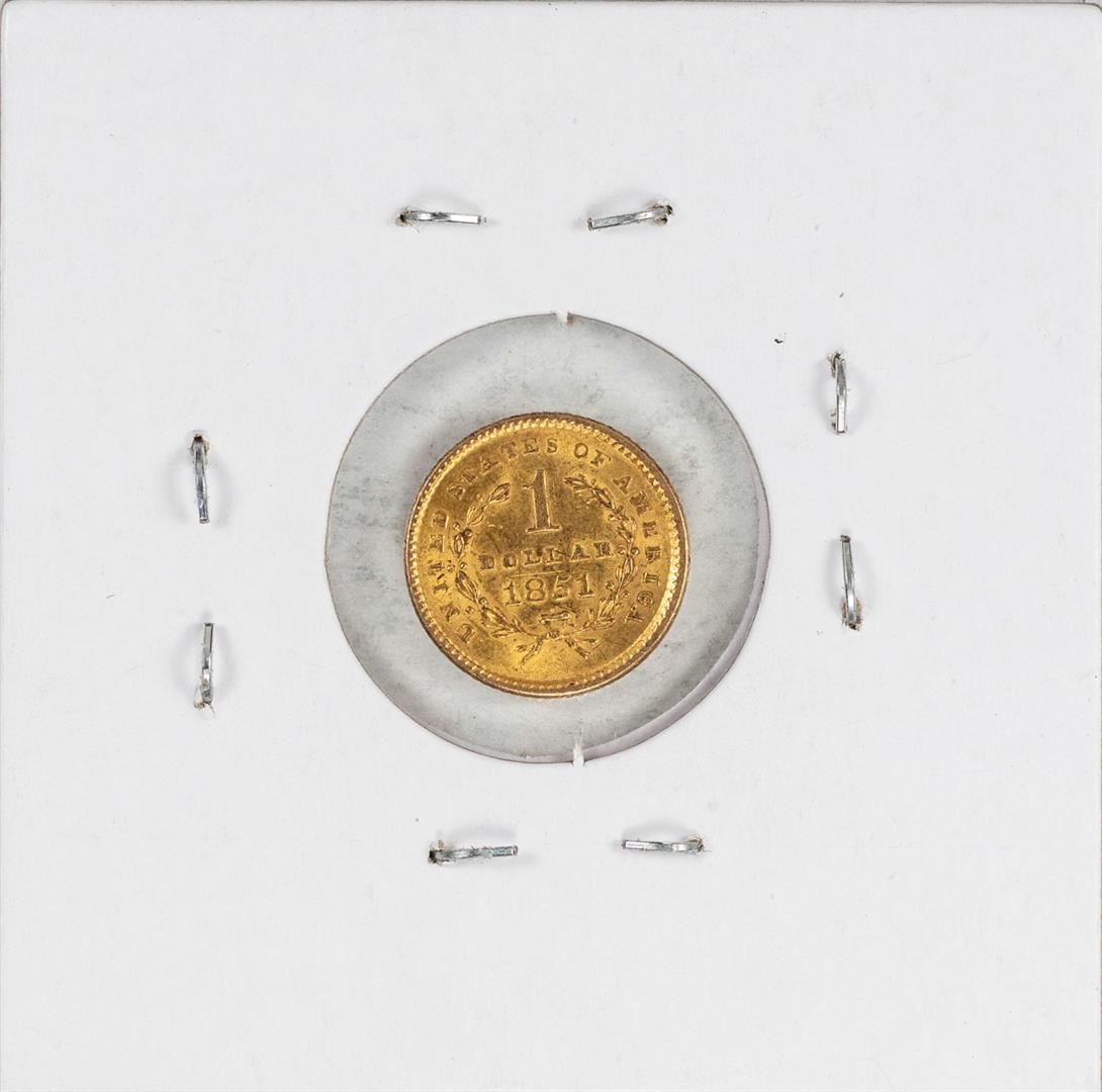 One 1851 $1 Liberty Head Gold Dollar Coin.