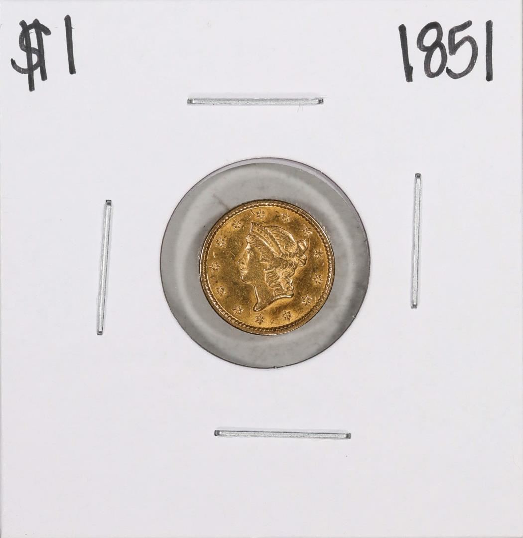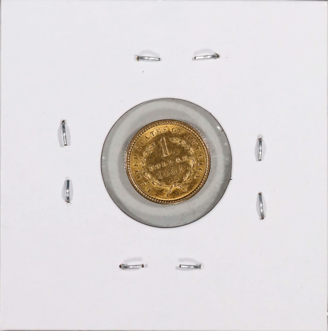 One 1851 $1 Liberty Head Gold Dollar Coin.
