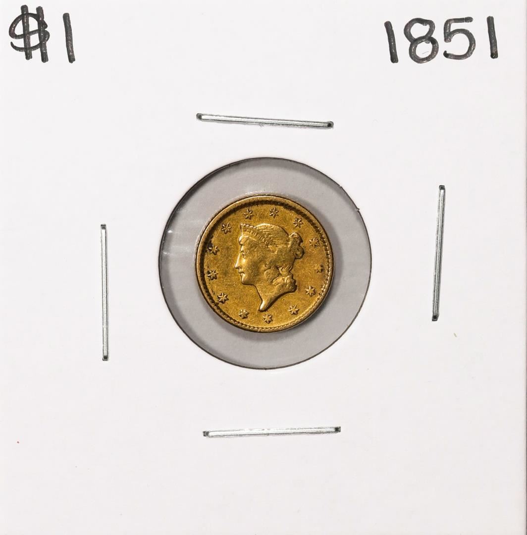 One 1851 $1 Liberty Head Gold Dollar Coin.