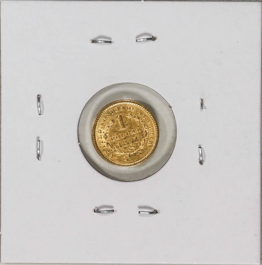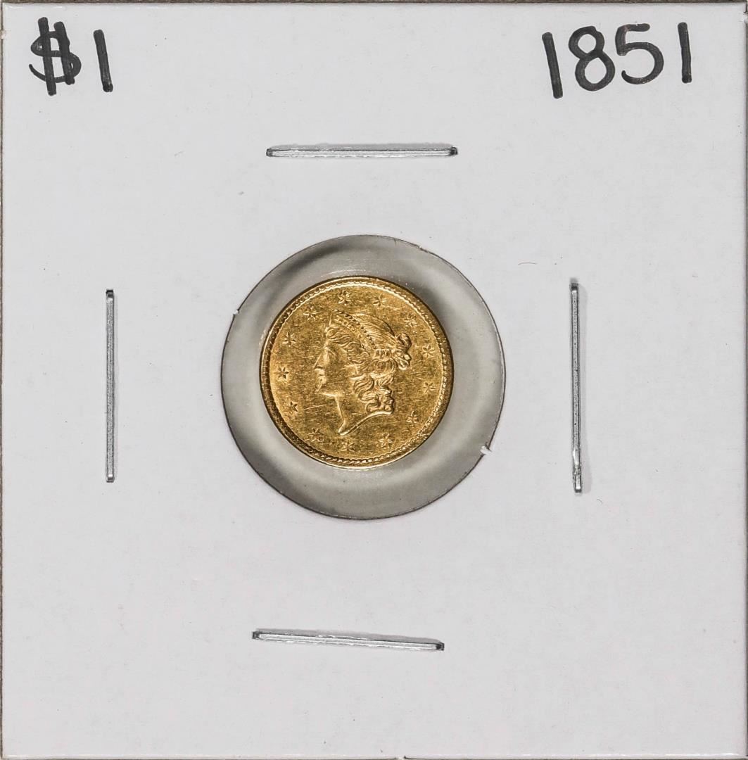 One 1851 $1 Type 1 Liberty Head Gold Dollar Coin.