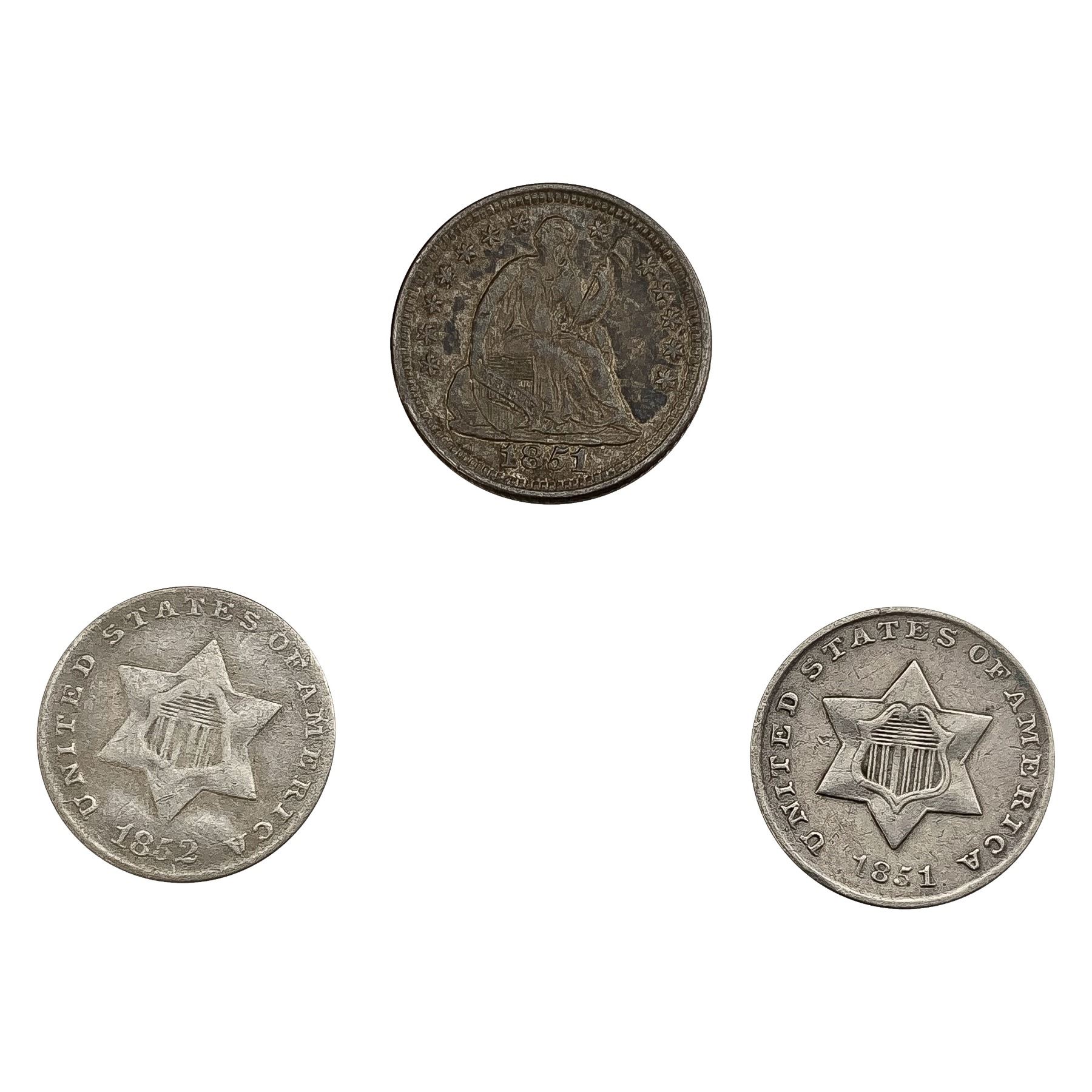 1851-1852 [3] U.S. Silver Coin Type Lot