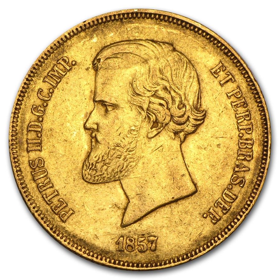 1851-1889 Brazil Gold 20,000 Reis Pedro II Avg Circ (Random)