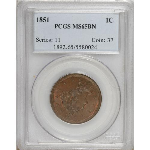 1851 1C MS65 Brown PCGS. PCGS Population (49/6). N