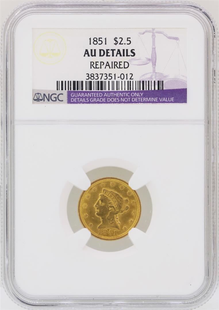One 1851 $2 1/2 Liberty Head Quarter Eagle Gold Coin NGC AU Details. NGC Certified.