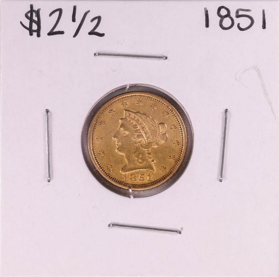 One 1851 $2 1/2 Liberty Head Quarter Eagle Gold Coin.