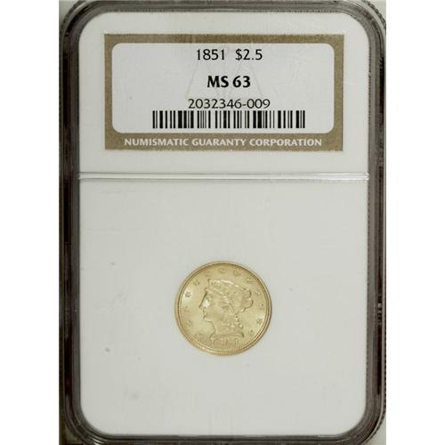 1851 $2 1/2 MS63 NGC. Select and frosty with minimally