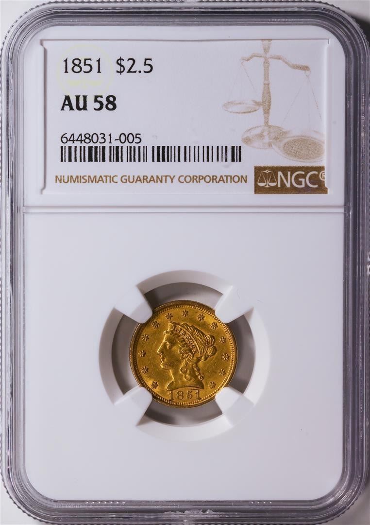 One 1851 $2.5 Liberty Head Quarter Eagle Gold Coin NGC AU58.