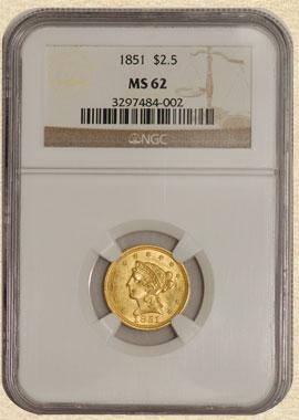 5888-35 1851 $2.5 Liberty MS62 NGC