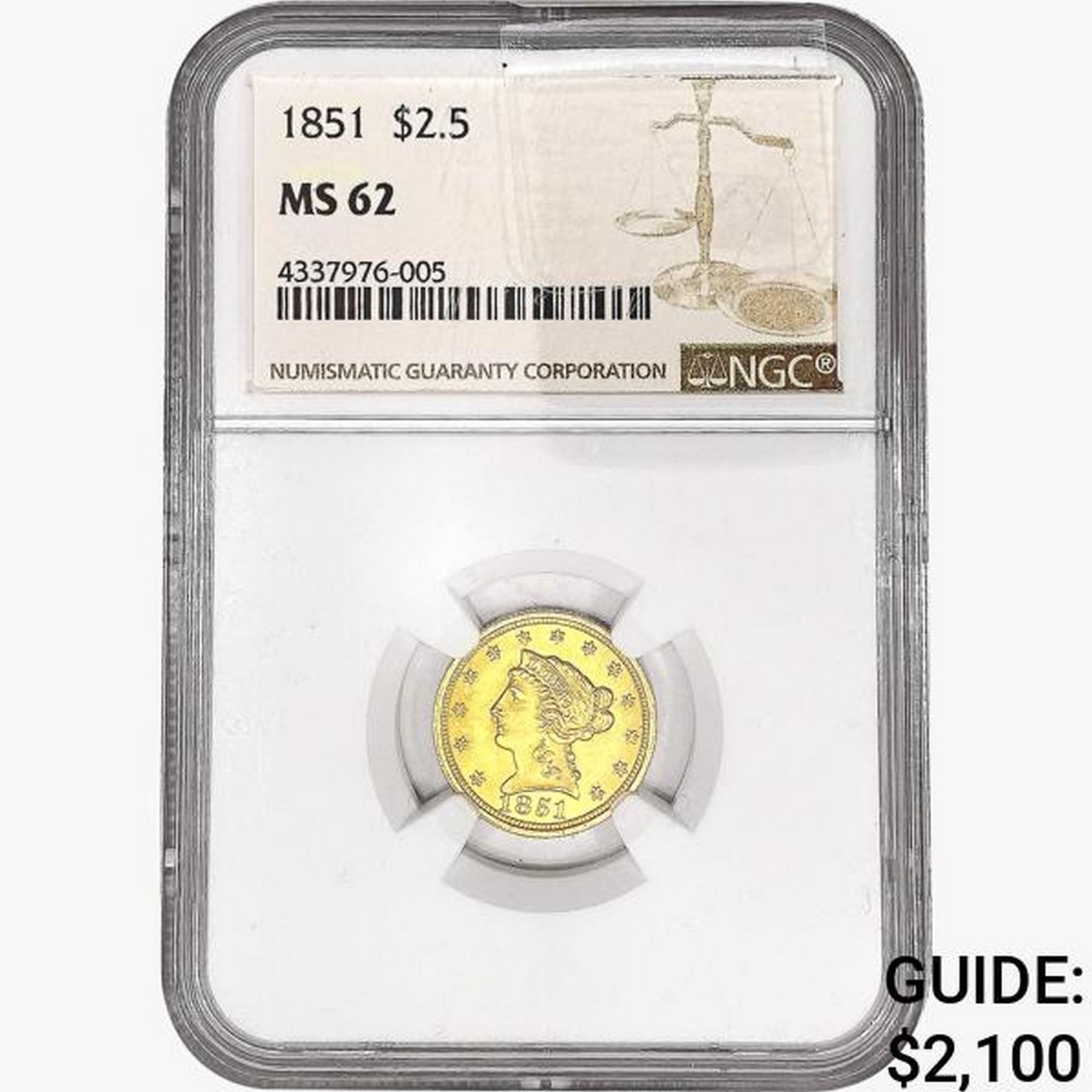 1851 $2.50 Gold Quarter Eagle NGC MS62