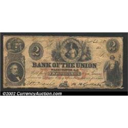 1851 $2 Bank of the Union, Washington, DC, About Fine.