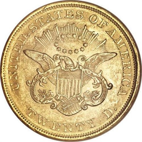 <B>1851 $20 AU58 NGC.</B></I> This crisply struck Type One twenty lacks individually noticeable marks, and luster dominates all but the open obverse field. Although more than 2 million pieces were struck, no numismatic premium existed until several decades later, and most survivors are in circulated grades. The dies are slightly misaligned, since the right-side borders have double rims.<BR><BR><B>Coin Engraver:</B> James B. Longacre<BR><BR><b>Shipping:</b> Coins & Currency (<a target="_blank" href="http://www.heritageauctions.com/common/shipping.php">view shipping information</a>)
