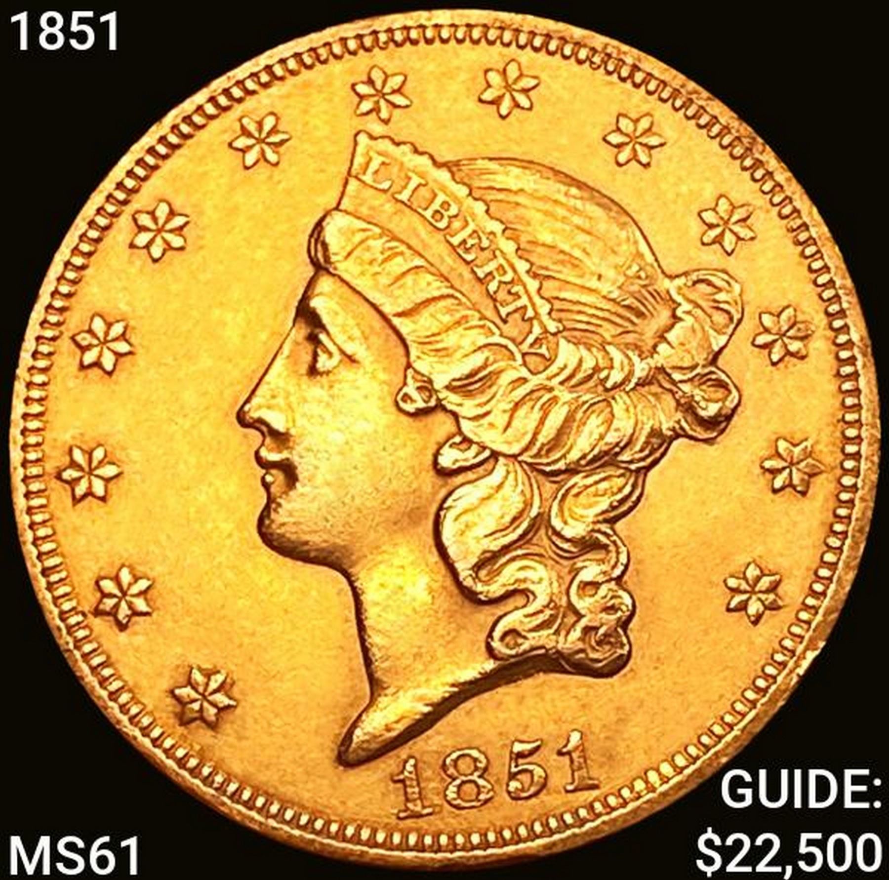 1851 $20 Gold Double Eagle UNCIRCULATED