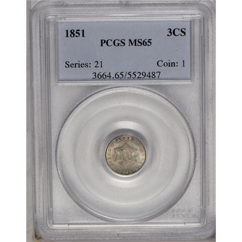 <B>1851<3CS> MS65 PCGS.</B></I> Both sides are veiled in pastel beige-gold, ice-blue, and lilac patina, and the strike is well above average for the issue, particularly on the border elements. A few minute reverse handling marks are noted. Each side drips with luster.