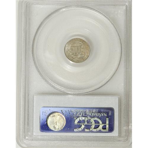 1851 3CS MS65 PCGS. Pastel blues and golds grace each