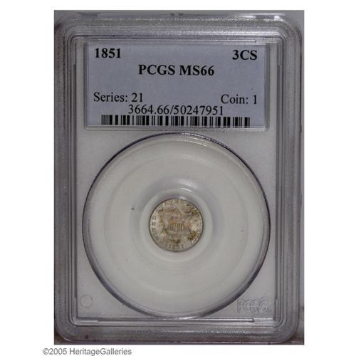 1851 3CS MS66 PCGS. Lustrous, well preserved surfaces 1851[3CS] MS66 PCGS.