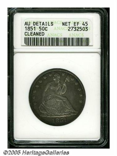 <B>1851<50C>--Cleaned--ANACS. AU Details, Net XF45.</B></I> Light hairlines visit light to medium gray surfaces. The design elements are well defined throughout.<BR><I>From The Empire State Collection, Part Two.</B></I>