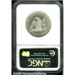 <B>1851 50C MS65 NGC.</B></I> WB-103, R.7 in Uncirculated. In our recent Long Beach Sale, we offered a PCGS graded MS65 example of this date. Now, we have a second example in Gem condition. For those unfamiliar with Seated halves, the 1851 is considered the second rarest issue in the series by Dick Osburn, second only to the legendary 1878-S. When we offered Tommy Dorathy's collection of Seated halves in October 2001, he had accumulated three AU or MS examples of this date--perhaps he knew something as a collector the rest of us have overlooked. This is a brilliant, fully struck example that has bright, lightly striated obverse fields. There are no mentionable marks on either side of this remarkable Seated half rarity. Population: 3 in 65, 1 finer (2/05).