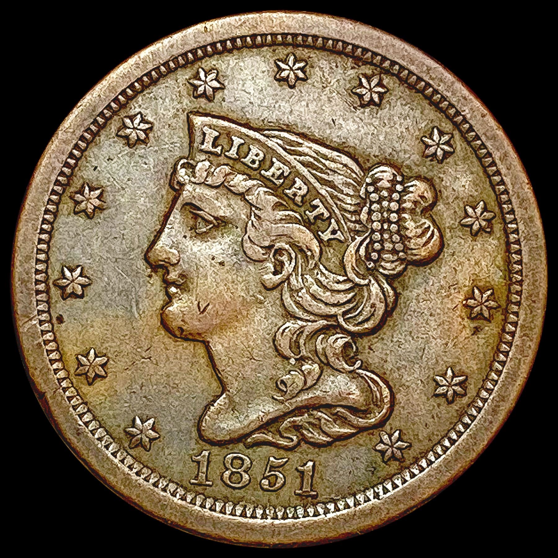 1851 Braided Hair Cent CLOSELY UNCIRCULATED