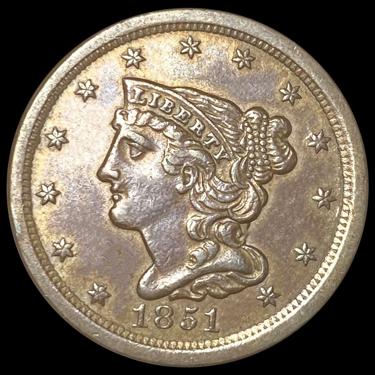 1851 Braided Hair Half Cent CLOSELY UNCIRCULATED