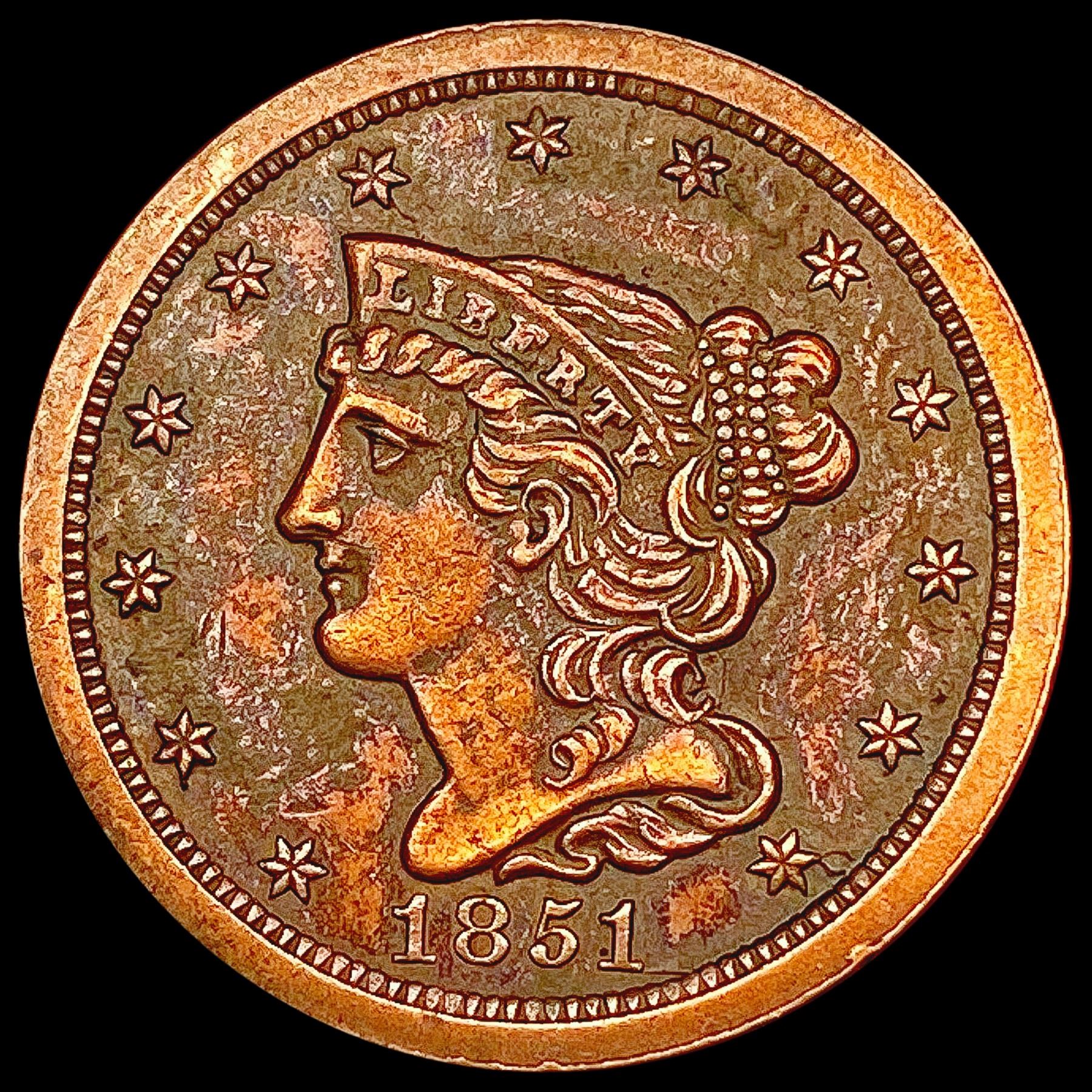 1851 Braided Hair Half Cent CLOSELY UNCIRCULATED