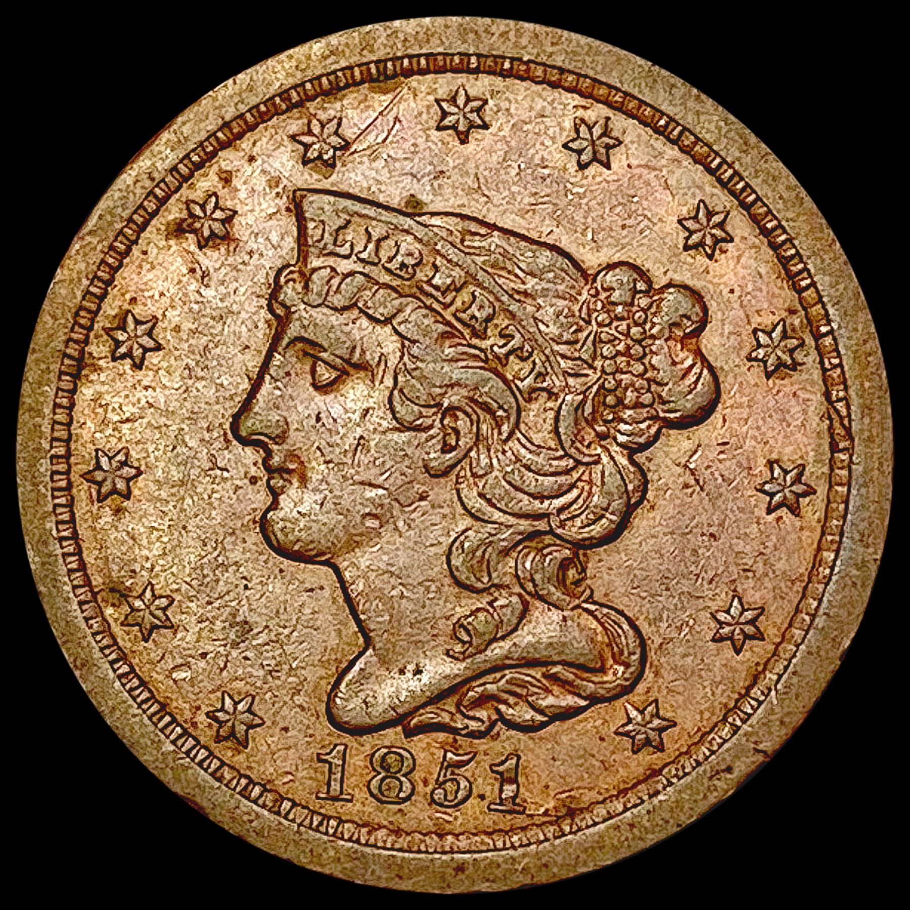 1851 Braided Hair Half Cent CLOSELY UNCIRCULATED
