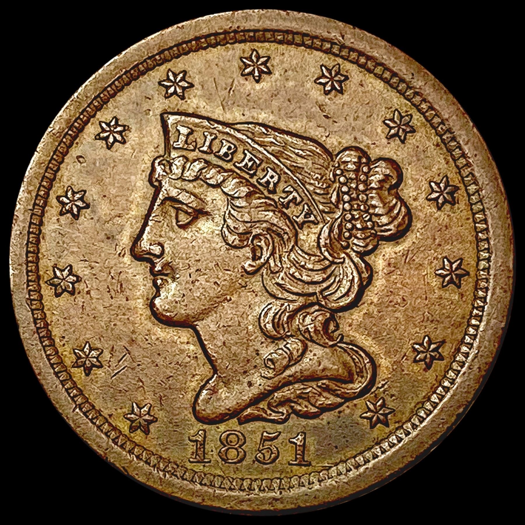 1851 Braided Hair Half Cent CLOSELY UNCIRCULATED
