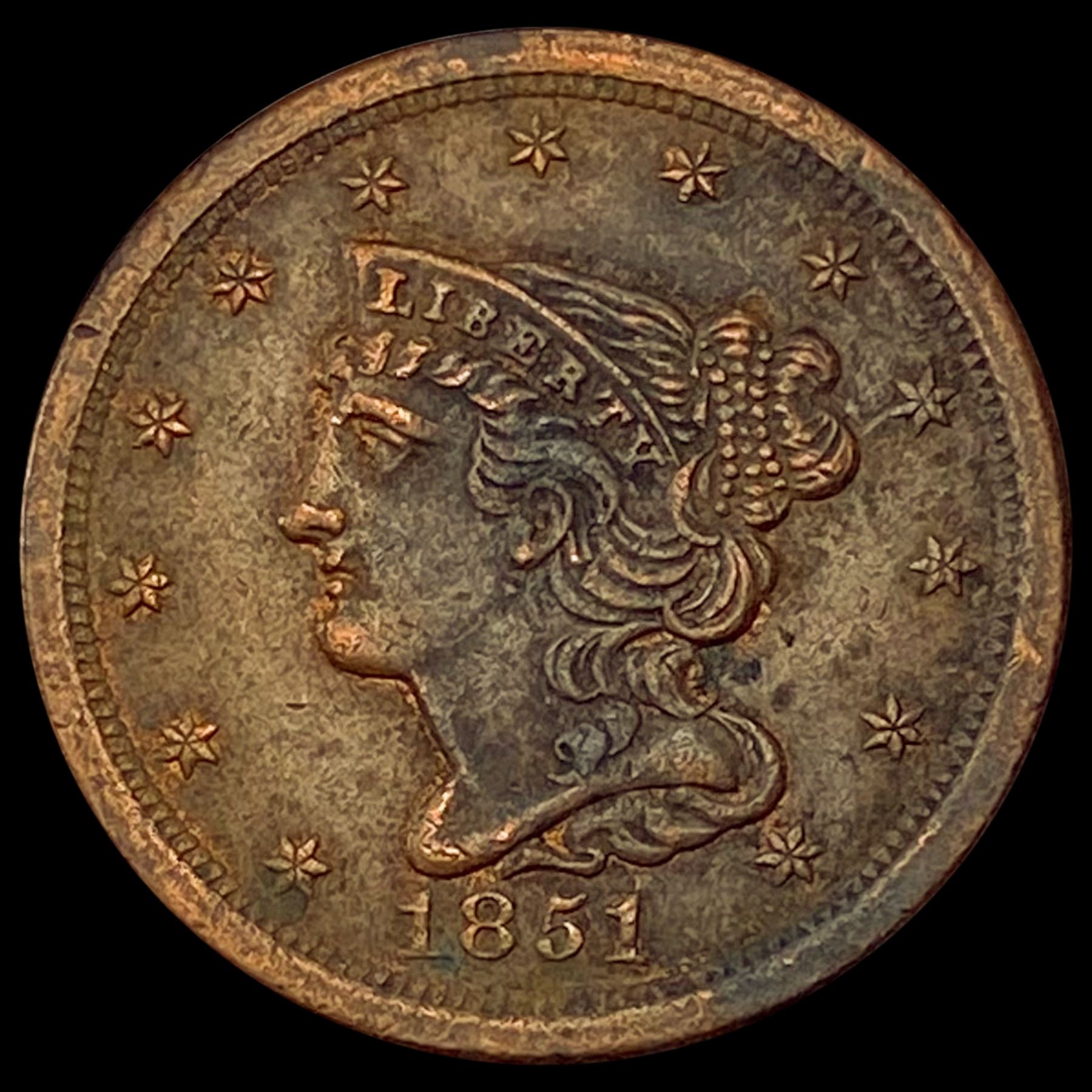 1851 Braided Hair Half Cent CLOSELY UNCIRCULATED
