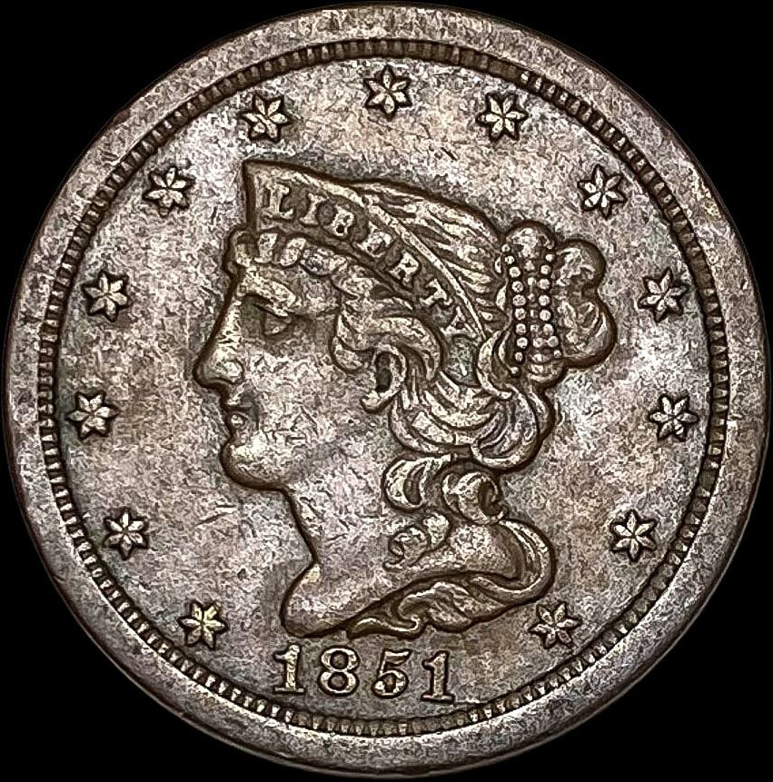 1851 Braided Hair Half Cent CLOSELY UNCIRCULATED