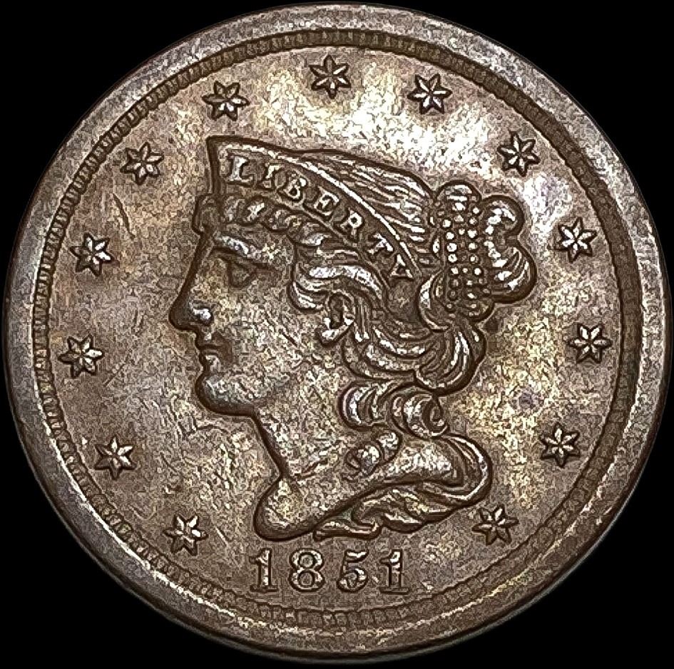 1851 Braided Hair Half Cent CLOSELY UNCIRCULATED