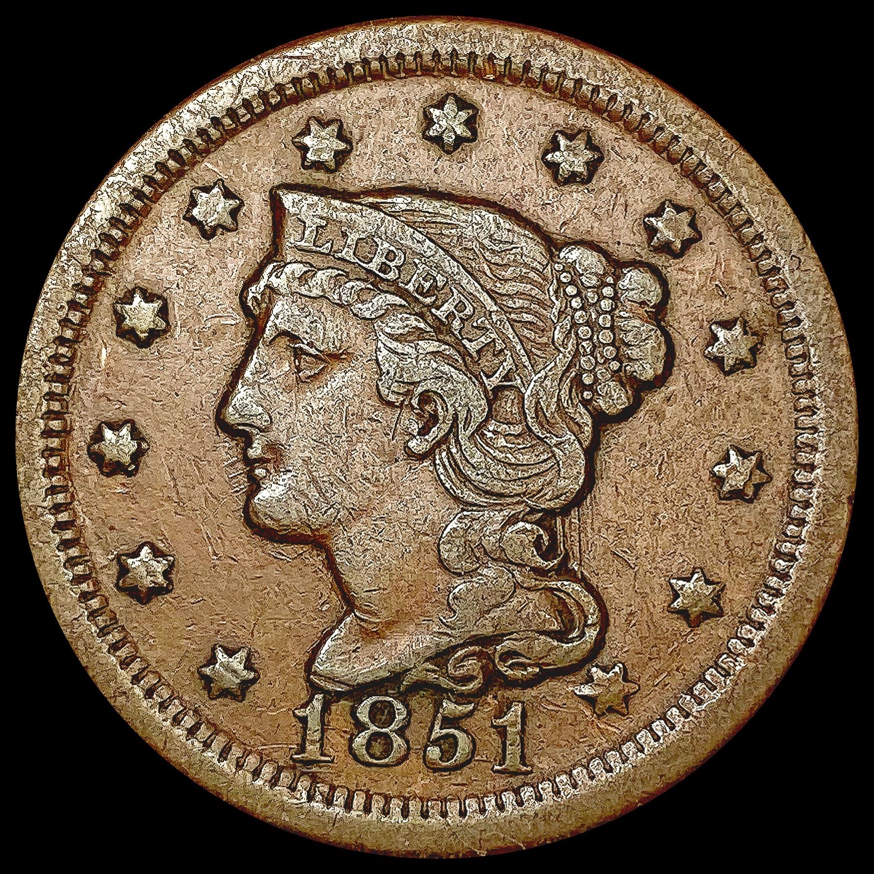 1851 Braided Hair Large Cent CLOSELY UNCIRCULATED